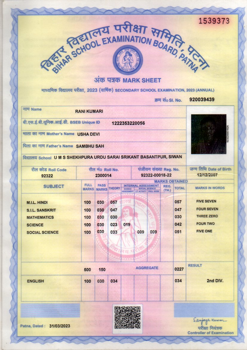 | : | Matric | |