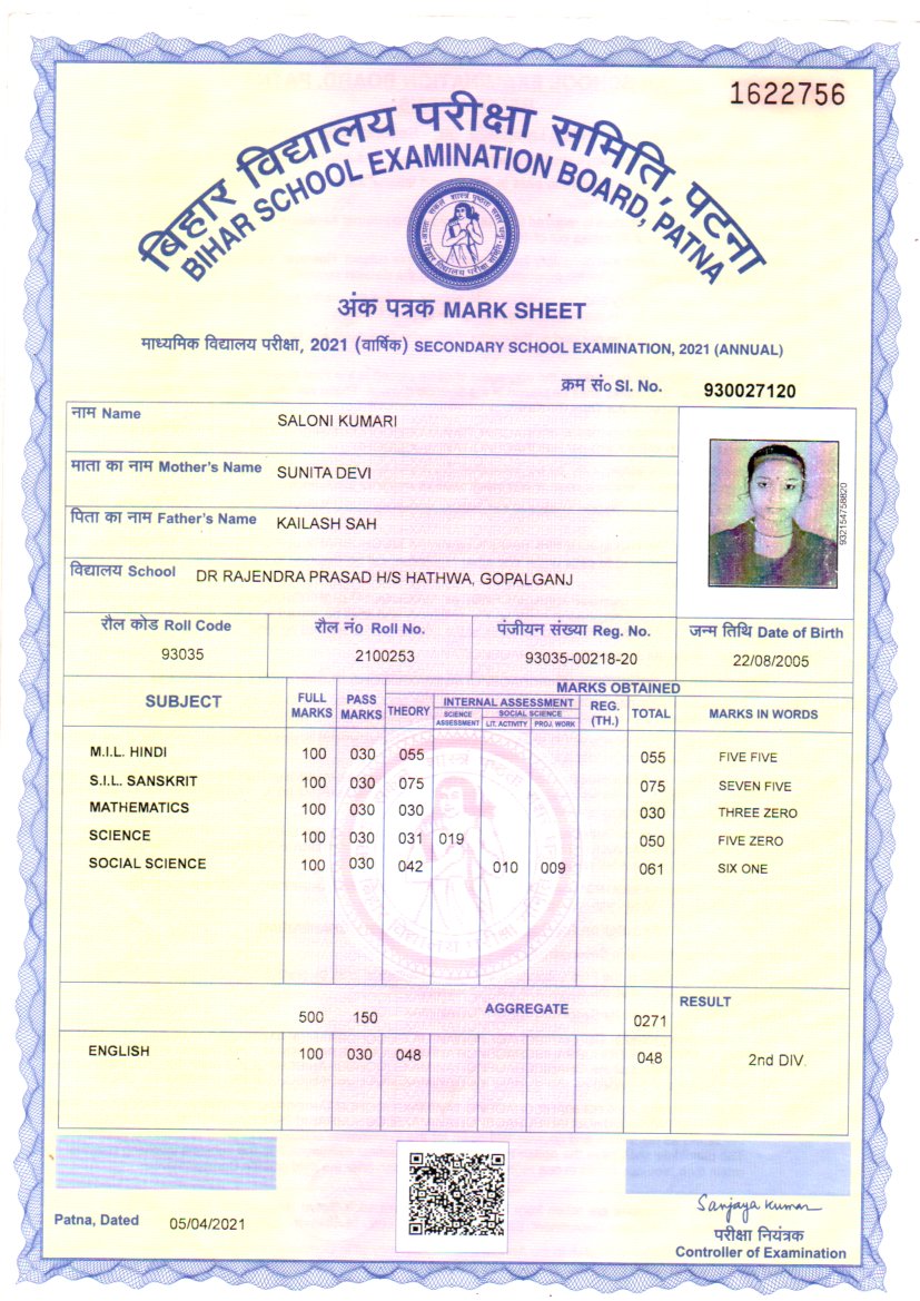 | : | Matric | |