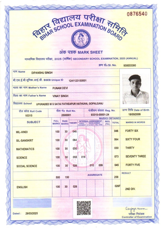 | : | Matric | |