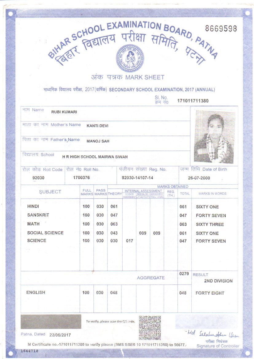 | : | Matric | |