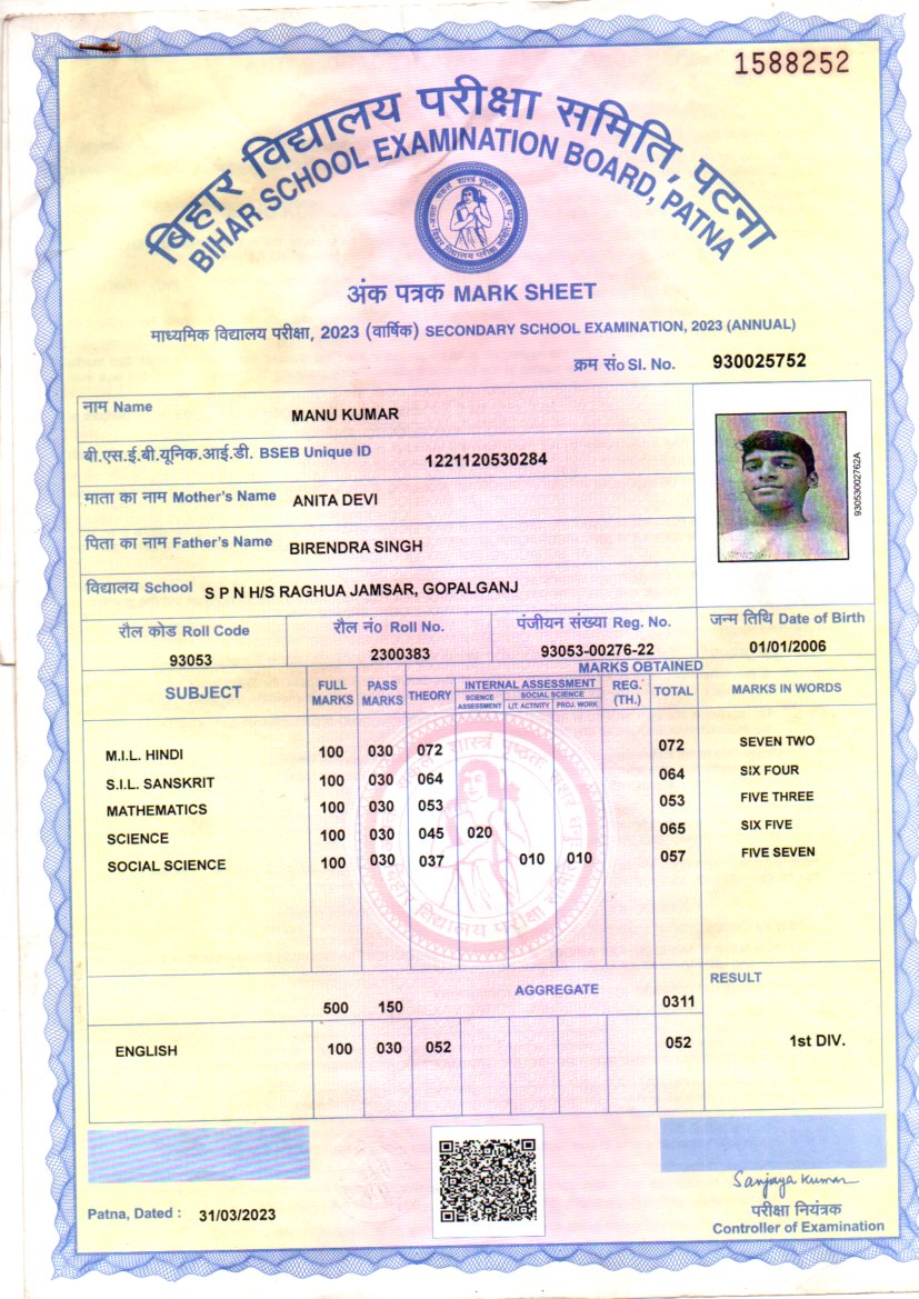 | : | Matric | |