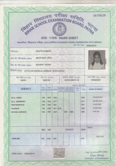 | : | Matric | |