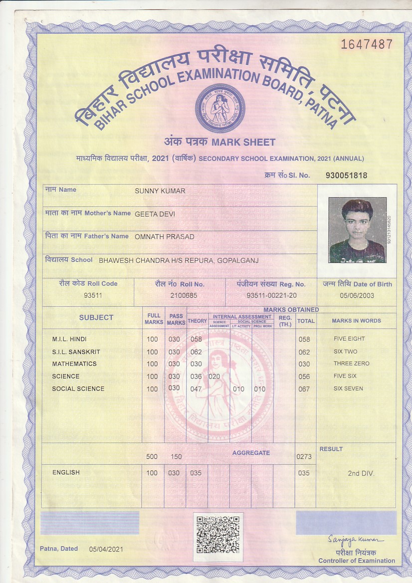 | : | Matric | |
