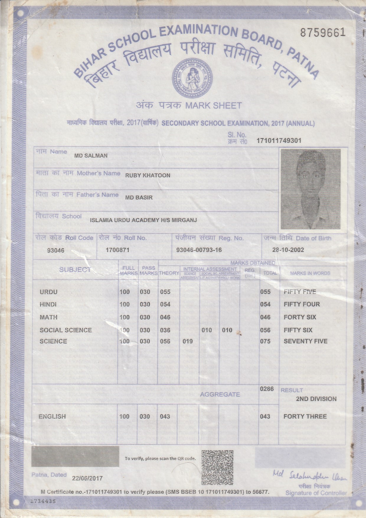 | : | Matric | |