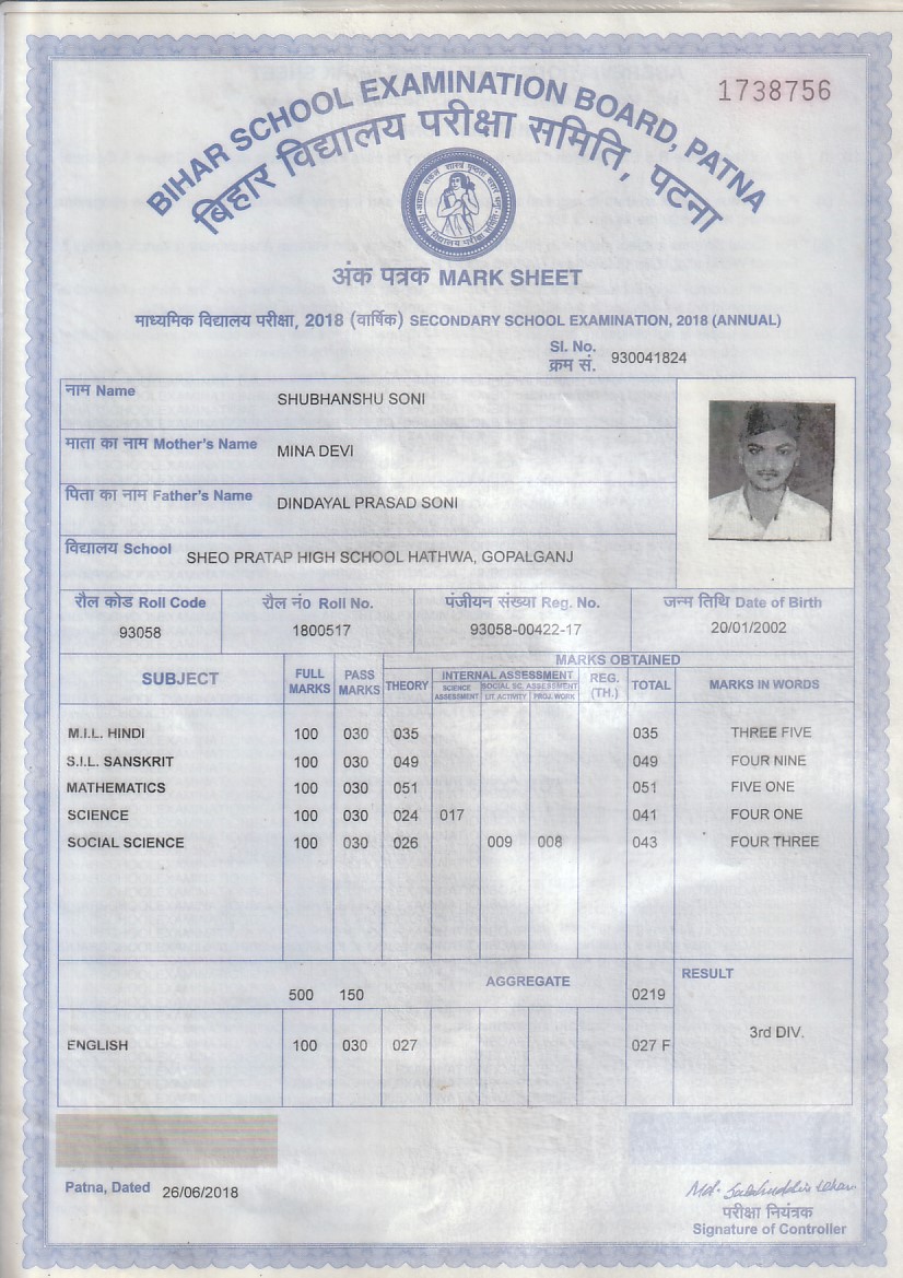 | : | Dindayal Prasad Soni | |