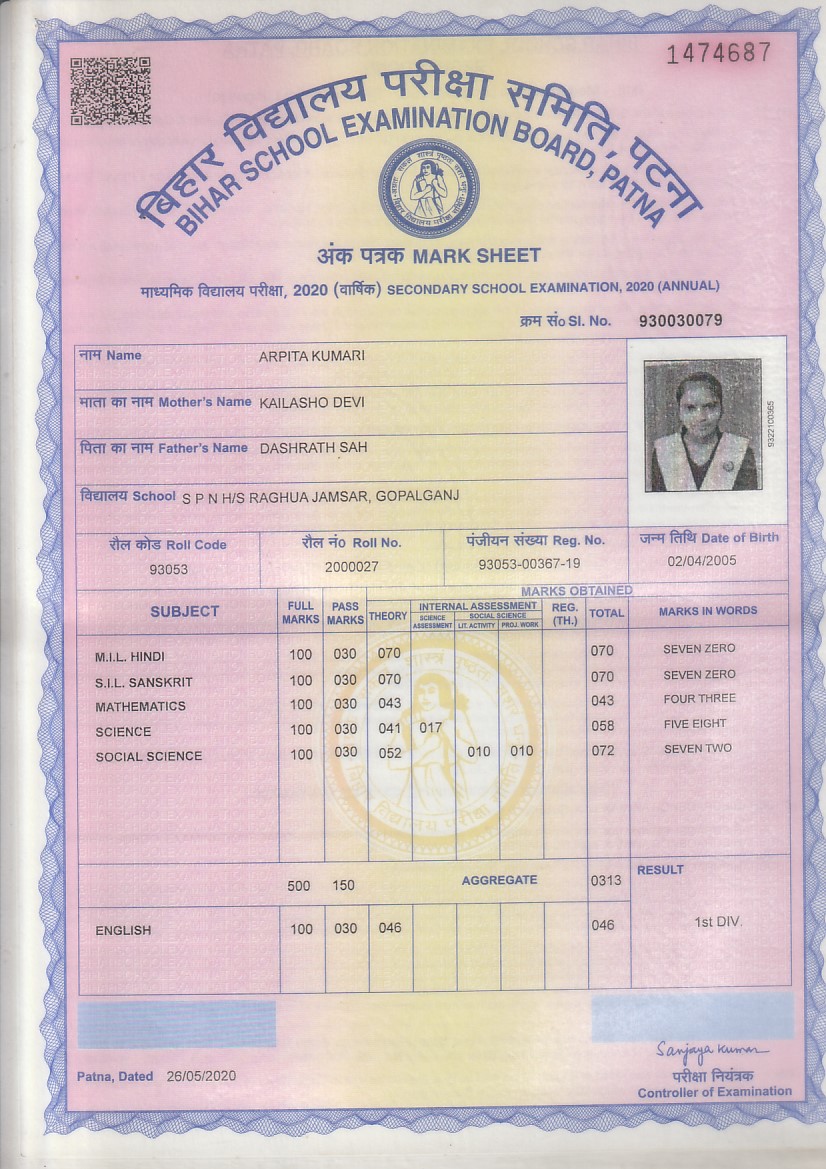 | : | Matric | |