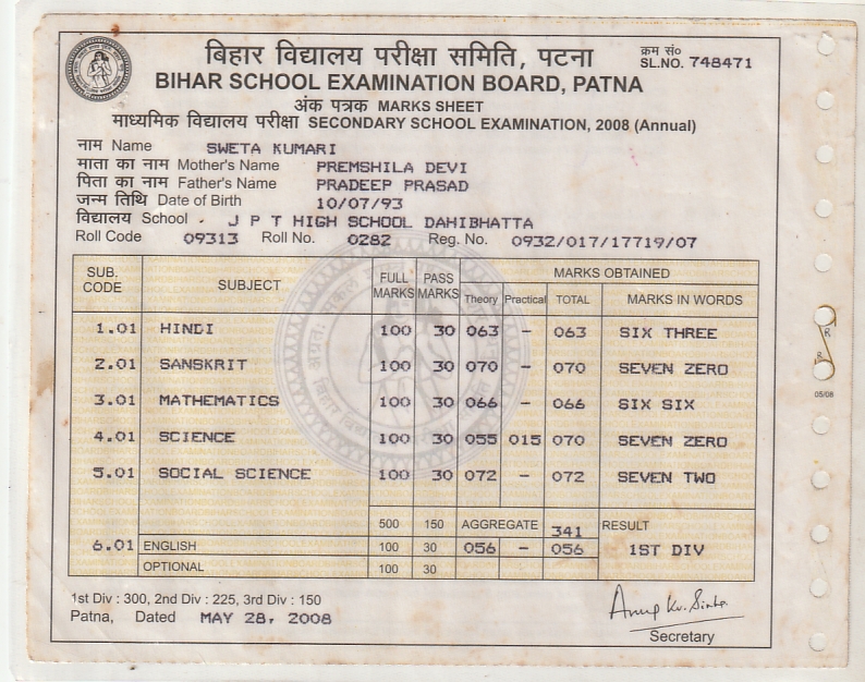 | : | Matric | |
