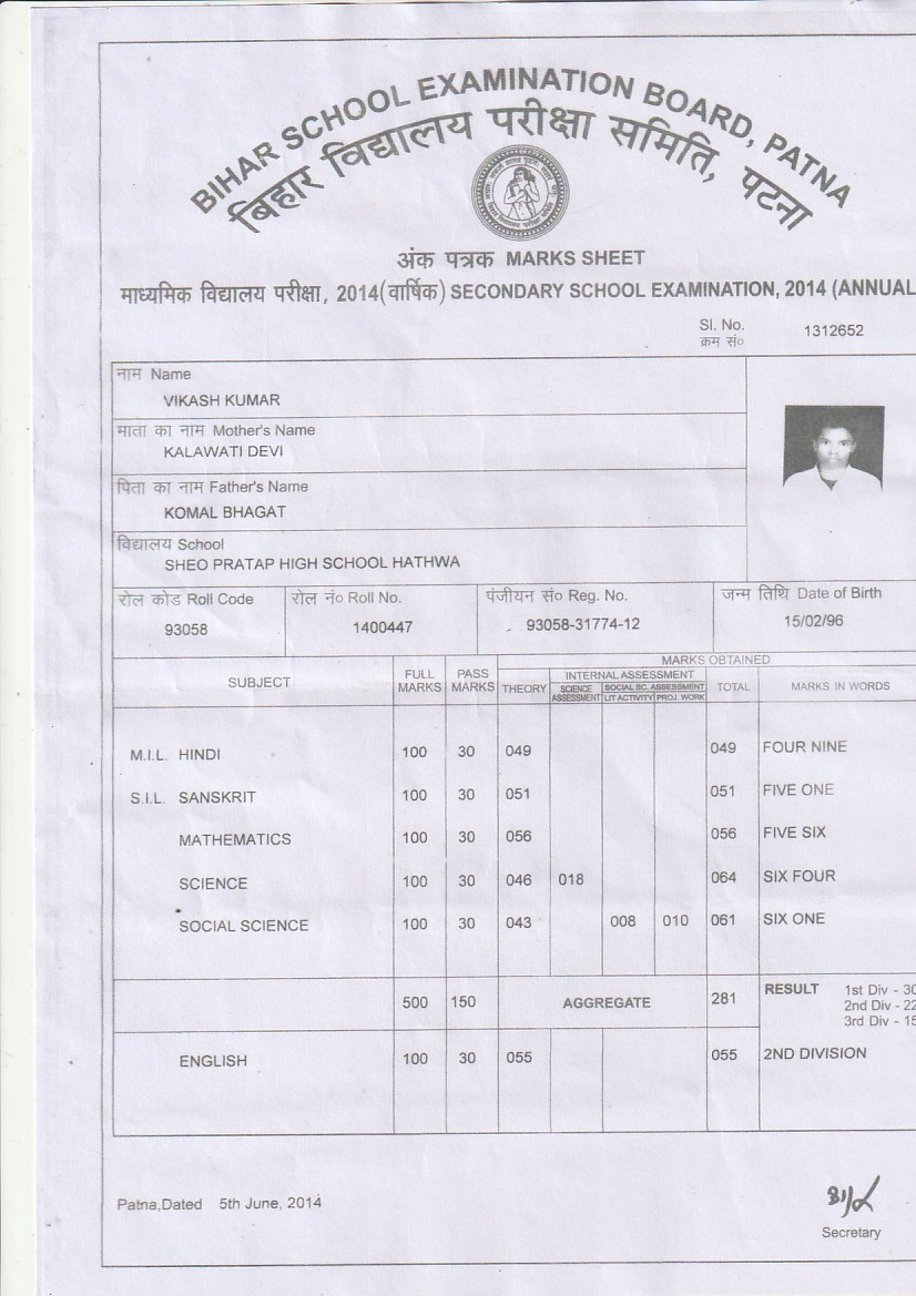 | : | Matric | |