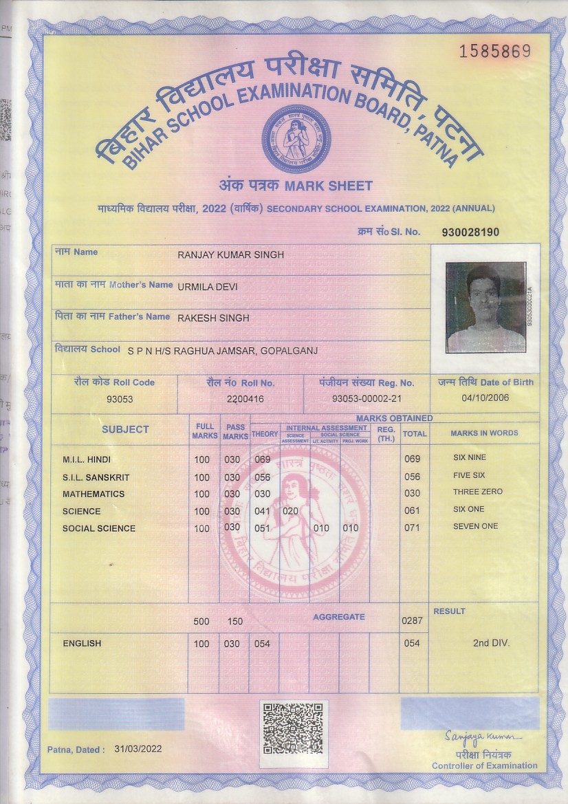 | : | Matric | |