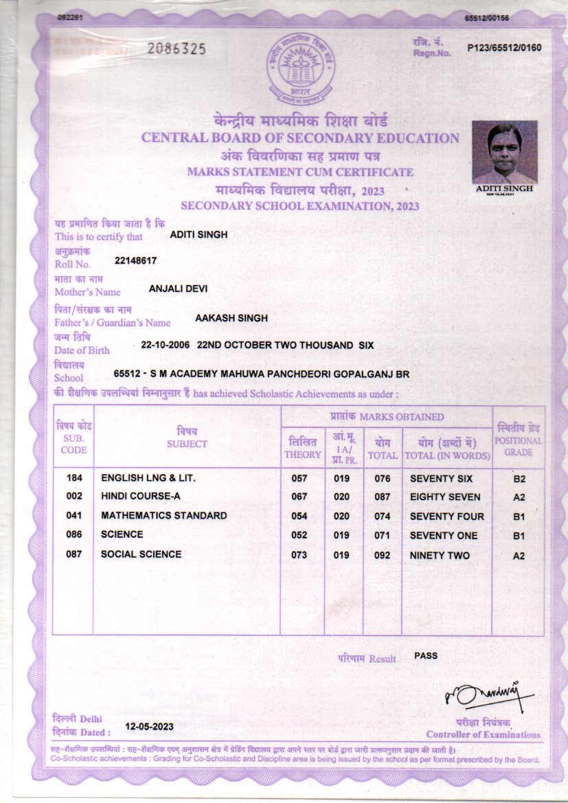 | : | Matric | |