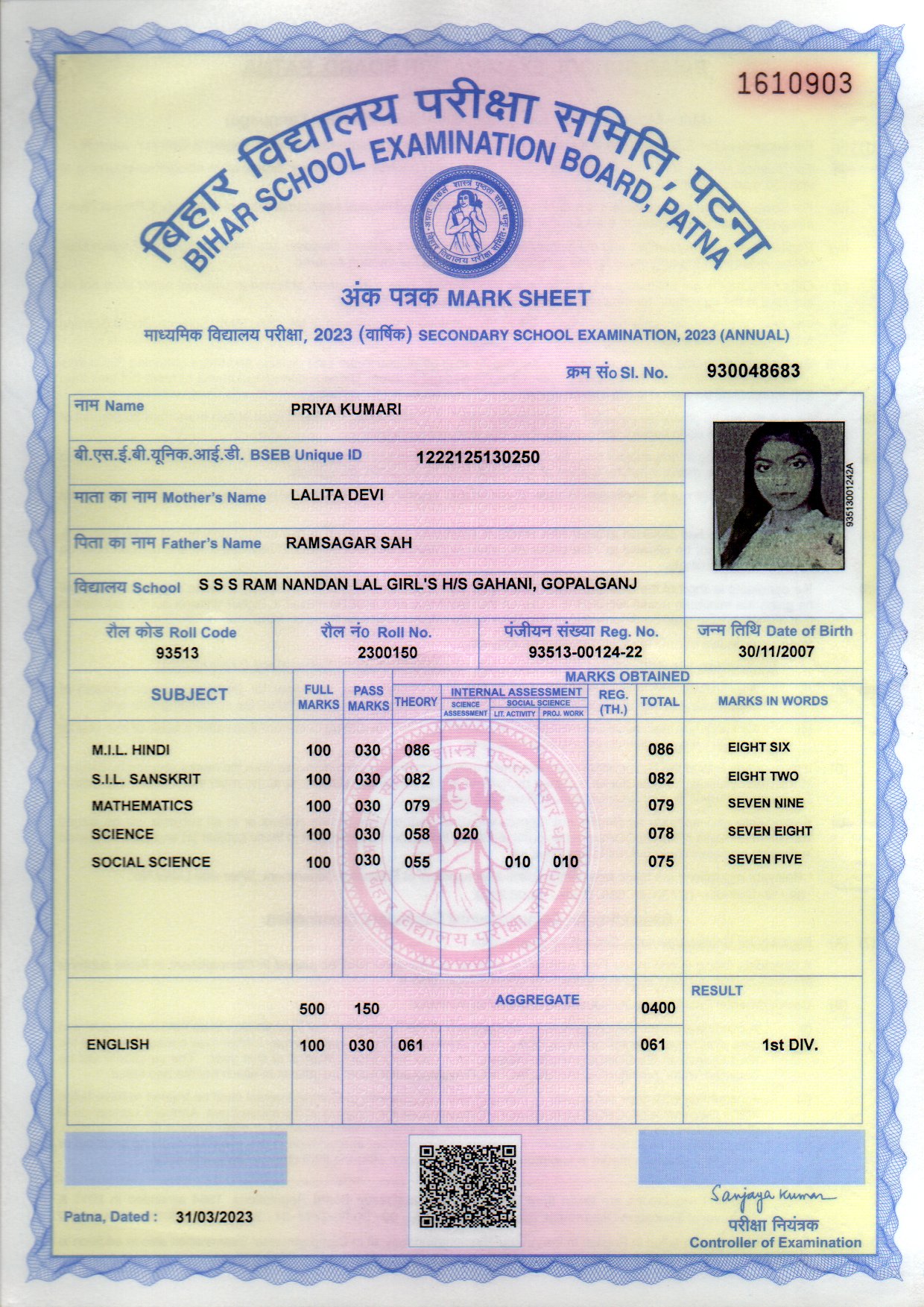 | : | Matric | |