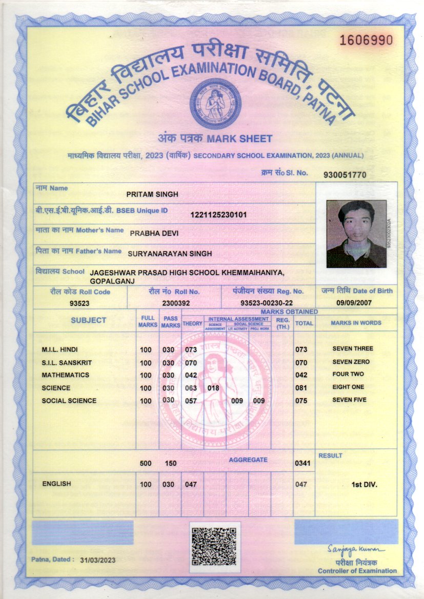 | : | Matric | |