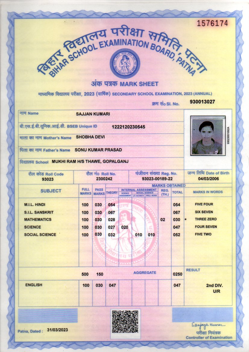 | : | Matric | |